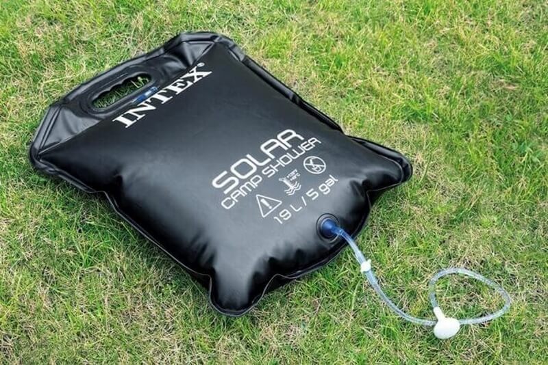 Походный душ Intex 28052 - состоит из пвх мешка для воды, гибкого шланга и рукоятки-душа. ПВХ мешок черного цвета, а, как известно, черный цвет поглощает больше ультрафиолетовых лучей, что способствует быстрому нагреву содержащейся в нем воды. Емкость душа составляет 19 литров. Размеры: 20x5x28 см.